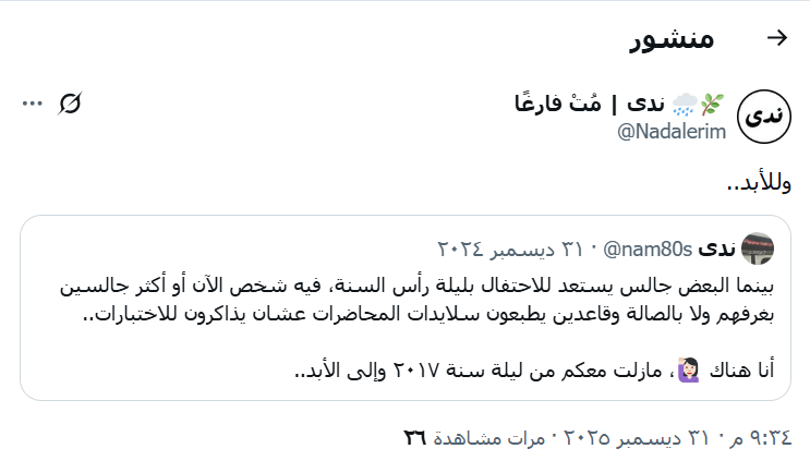 ” ندى… بعض التواريخ تمرّ، لكن بعضها يترك ظله”